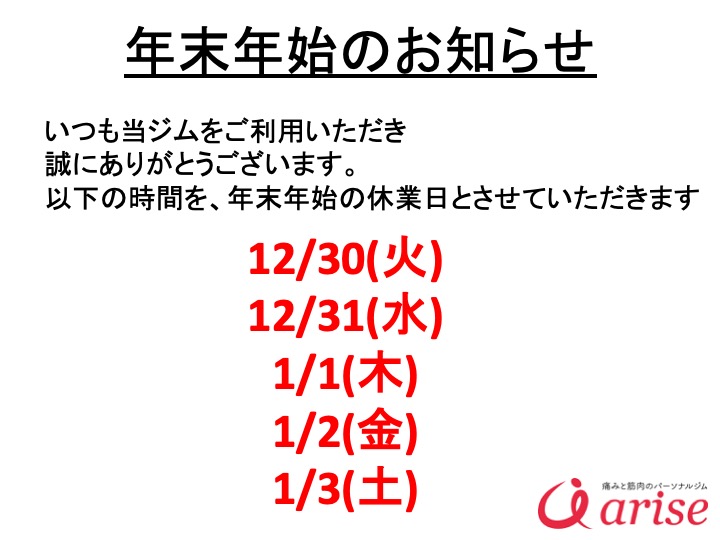 いつも当ジムをご利用いただき誠にありがとうございます。 誠に勝手ながら、12/2(火)は16:00〜は休診とさせて頂きます。 ご迷惑おかけして誠に申し訳ございませんが、何卒よろしくお願いいたします。 -